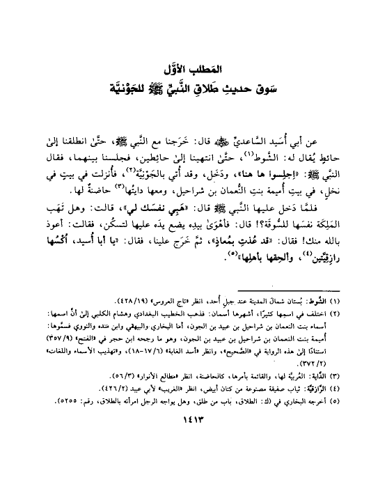 سَوق حديثِ طَلاقِ النَّبيِّ صلى الله عليه وسلم للجَوْنيَّة