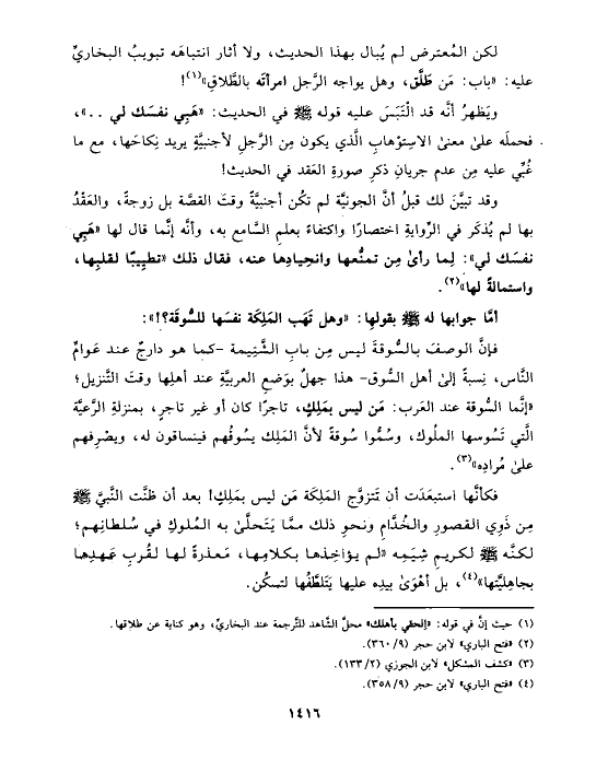 لكن المُعترض لم يُبال بهذا الحديث، ولا أثار انتباهَه تبويبُ البخاريِّ عليه: «باب: مَن طَلَّق، وهل يواجه الرَّجل امرأتَه بالطَّلاقِ» (¬١)!