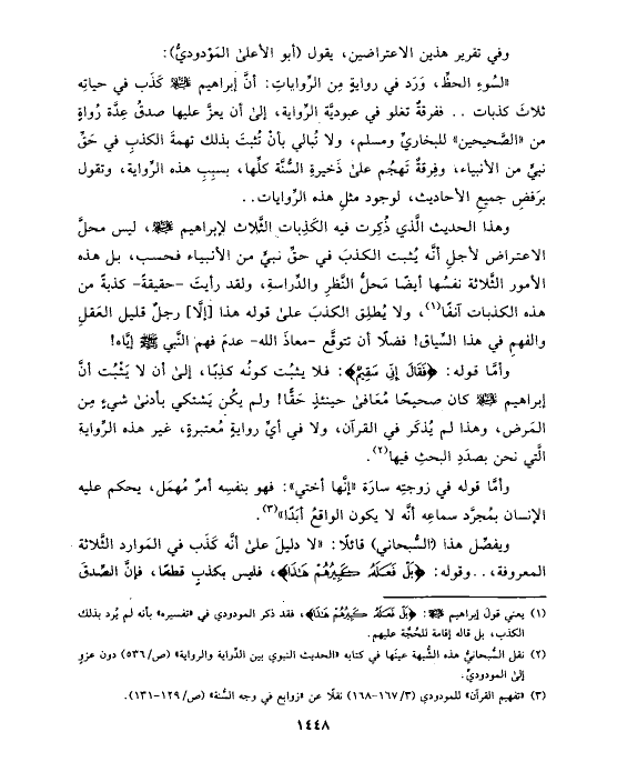 (¬٢) نقل السُّبحانيُّ هذه الشُّبهة عينَها في كتابه «الحديث النبوي بين الدِّراية والرواية» (ص/٥٣٦) دون عزوٍ إلى المودوديِّ.