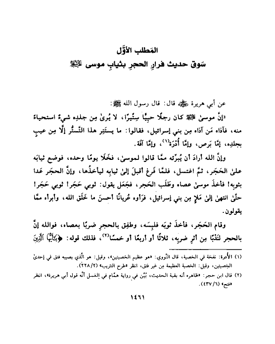سَوق حديث فرارِ الحجرِ بثيابِ موسى عليه السلام