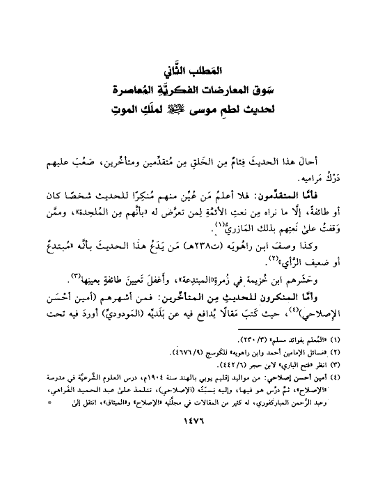 وأمَّا المنكرون للحديثِ مِن المتأخِّرين: فمن أشهرهم (أمين أحْسَن الإِصلاحي) (¬٤)، حيث كَتبَ مَقالًا يُدافع فيه عن بَلَديِّه (المَودوديِّ) أوردَ فيه تحت