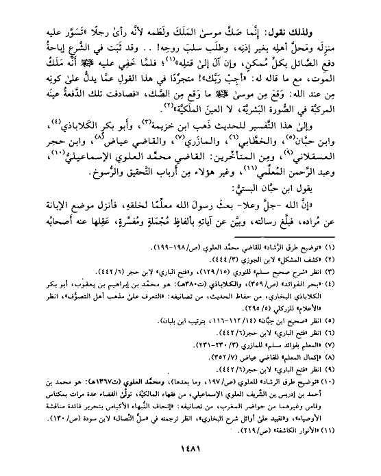 (¬١٠) «توضيح طرق الرشاد» للعلوي (ص/١٩٧، وما بعدها)، ومحمَّد العلوي (ت ١٣٦٧ هـ): هو محمد بن أحمد بن إدريس بن الشَّريف العلوي الإسماعيلي، من فقهاء المالكيَّة، تولَّى القضاء عدة مرات بمكناس وفاس وغيرهما من حواضر المغرب، من تصانيفه: «إتحاف النُّبهاء الأكياس بتحرير فائدة مناقشة الأوصياء»، و «تقييد على أوائل شرح البخاري»، انظر ترجمته في «سلُّ النِّصال» لابن سودة (ص/١٣٠).