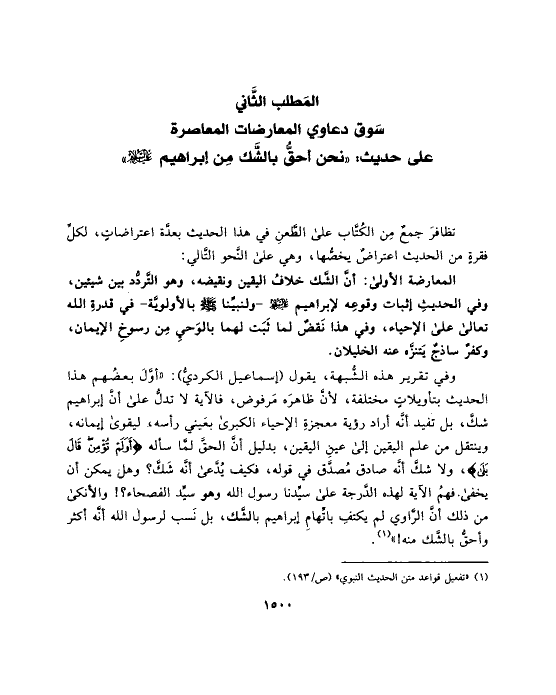 على حديث: «نحن أحقُّ بالشَّك مِن إبراهيم عليه السلام»