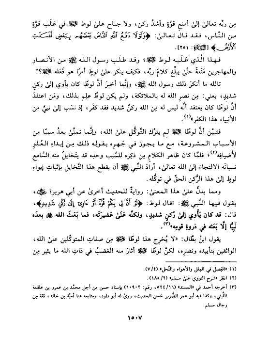 مِن ربِّه تعالى إلى أمنعِ قوَّةٍ وأشدِّ ركن، ولا جناح على لوط عليه السلام في طَلَب قوَّةٍ من النَّاس، فقد قال تعالى: {وَلَوْلَا دَفْعُ اللَّهِ النَّاسَ بَعْضَهُمْ بِبَعْضٍ لَّفَسَدَتِ الأَرْضُ} [البقرة: ٢٥١].