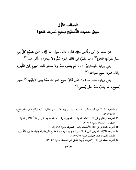 سوق حديث التَّصبُّح بسبعِ تمَرات عَجوة