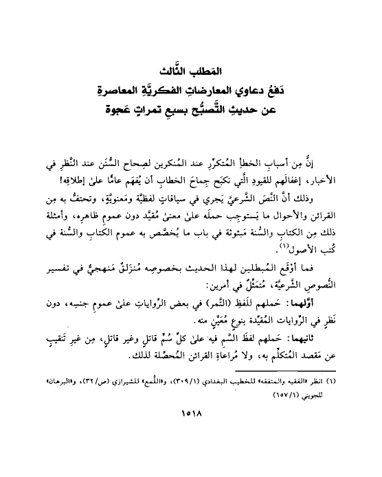 عن حديثِ التَّصبُّح بسبعِ تمراتٍ عَجوة