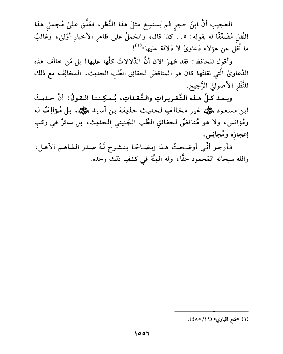 وأقول للحافظ: فقد ظهرَ الآن أنَّ الدَّلالاتَ كلَّها عليها! بل مَن خالَف هذه الدَّعاوى الَّتي نقلتَها كان هو المناقضَ لحقائِق الطِّبِ الحديث، المخالِف مع ذلك للنَّظَرِ الأصوليَّ الرَّجيح.