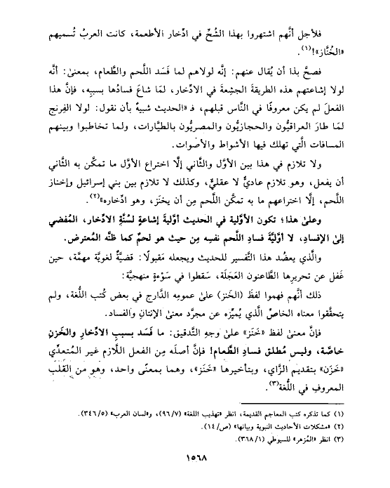 فإنَّ معنى لفظ «خَنَز» على وجهِ التَّدقيق: ما فَسَد بسببِ الادِّخارِ والخَزنِ خاصَّة، وليس مُطلق فسادِ الطَّعام! فإنَّ أصلَه مِن الفعل اللَّازم غير المُتعدِّي «خَزَن» بتقديم الزَّاي، وبتأخيرها «خَنَز»، وهما بمعنًى واحد، وهو من القلب المعروفِ في اللُّغة (¬٣).