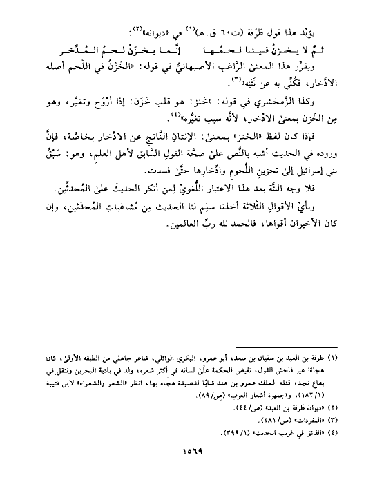 ويقرِّر هذا المعنى الرَّاغب الأصبهانيُّ في قوله: «الخَزْنُ في اللَّحم أصله الادَّخار، فكُنِّي به عن نَتَنِه» (¬٣).