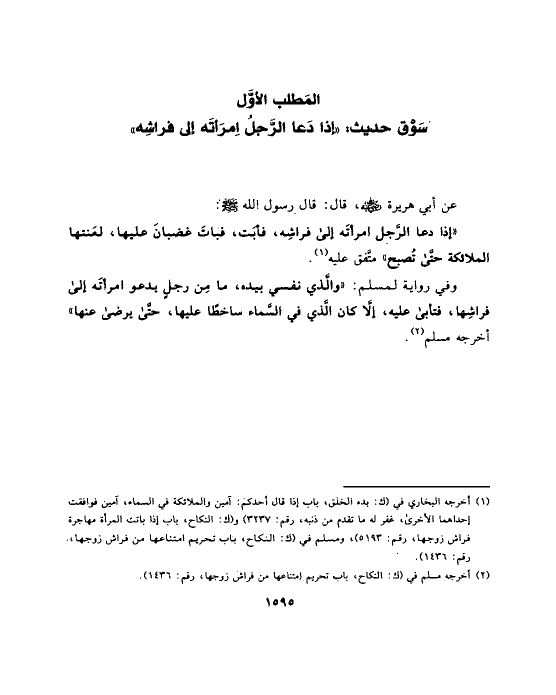 سَوْق حديث: «إذا دَعا الرَّجلُ اِمرَأتَه إلى فراشِه»