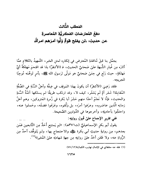 عن حديثِ: «لن يفلح قومٌ وَلَّوا أمرَهم امرأةً»