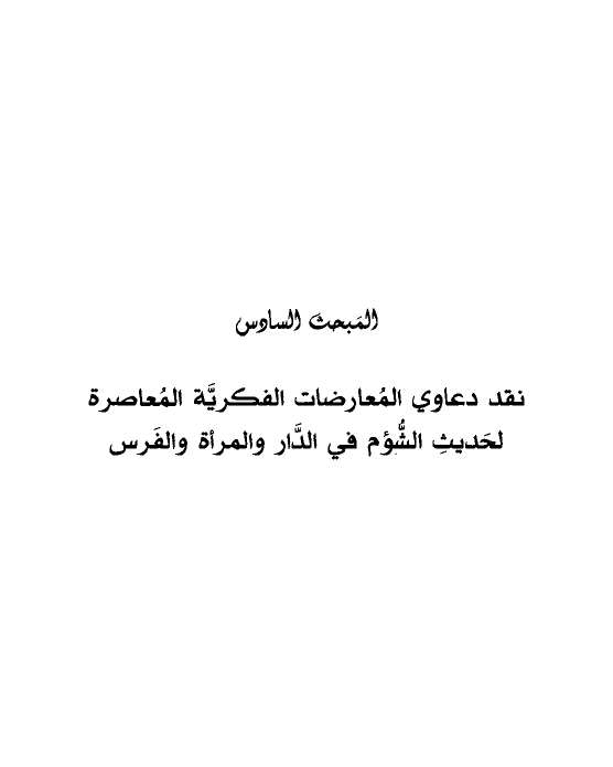 نقد دعاوي المُعارضات الفكريَّة المُعاصرة لحَديثِ الشُّؤم في الدَّار والمرأة والفَرس