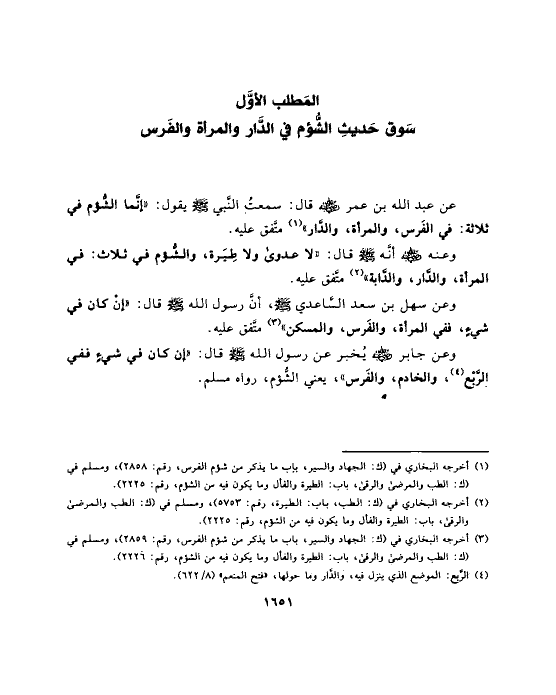سَوق حَديثِ الشُّؤم في الدَّار والمرأة والفَرس