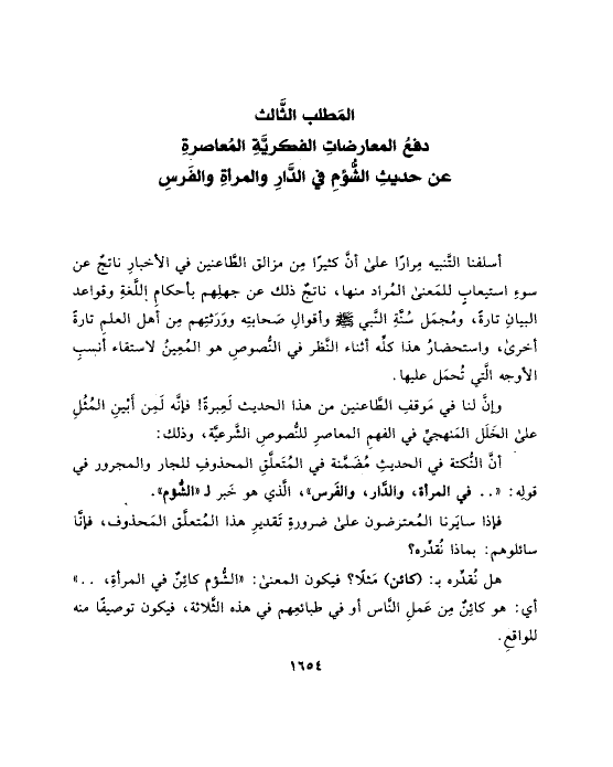 عن حديثِ الشُّؤمِ في الدَّارِ والمرأةِ والفَرسِ