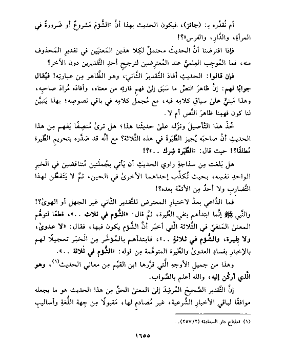 فإذا افترضنا أنَّ الحديثَ محتملٌ لكِلا هذين المَعنيَين في تقديرِ المَحذوف منه، فما المُوجِب العِلميُّ عند المُعترِضين لترجيحِ أحدِ التَّقديرين دون الآخر؟
