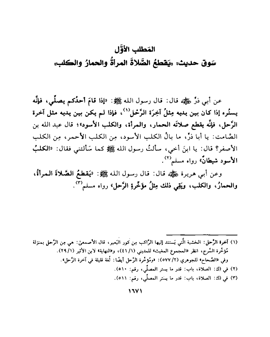 سَوق حديث: «يَقطعُ الصَّلاةَ المرأةُ والحمارُ والكلب»
