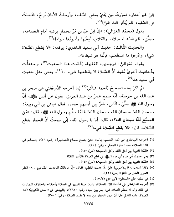 يقول الغزاليُّ: «وجمهرة الفقهاء رَفَضَت هذا الحديث (¬٣)، واستدلَّت بأحاديث أخرى تُفيد أنَّ الصَّلاة لا يقطعها شيء .. » (¬٤)، يعني مثل حديثِ أبي سعيد هذا (¬٥).