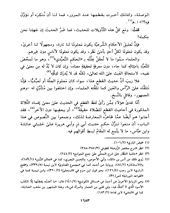 أمَّا عَدى هؤلاءِ مِمَّن رَأى لفظَ القطعِ في الحديث على معنى إفساد الثَّلاثة المذكورة في أحاديث القطعِ للصَّلاة حقيقةً (¬٤)، أو ببعضِها دون الآخر (¬٥)، فقد أجابوا هم أيضًا عمَّا ظاهرُه المعارضة لذلك، وجمعوا بين النُّصوص في هذا الباب، أن منعوا تنزُّلَ حكمِ حديث أبي ذرٍ وأبي هريرة على حَدِيثي عائشة وابن عبَّاس، ما لا يتَّسِع له المقامُ لبسطِ أقوالِهم فيه.