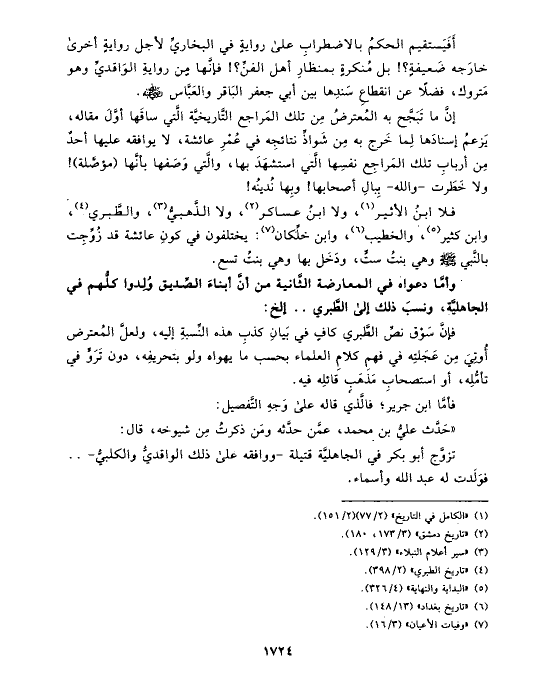 إنَّ ما تَبَجَّح به المُعترضُ مِن تلك المَراجع التَّاريخيَّة الَّتي ساقَها أوَّلَ مقاله، يَزعمُ إسنادَها لِما خَرج به مِن شَواذِّ نتائجِه في عُمْرِ عائشة، لا يوافقه عليها أحدٌ مِن أربابِ تلك المَراجِع نفسِها الَّتي استشهَدَ بها، والَّتي وَصَفها بأنَّها (مؤصَّلة)! ولا خَطَرت -والله- بِبالِ أصحابها! وبِها نُدينُه!