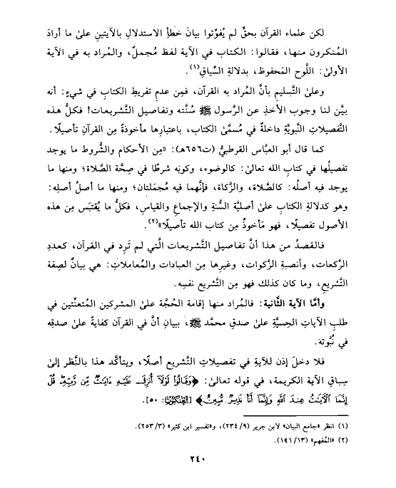 لكن علماء القرآن بحقٍّ لم يُفوِّتوا بيانَ خطأِ الاستدلالِ بالآيتينِ على ما أرادَ المُنكرون منها، فقالوا: الكتاب في الآية لفظ مُجملٌ، والمُراد به في الآية الأولى: اللَّوح المَحفوظ، بدلالةِ السِّياقِ (¬١).