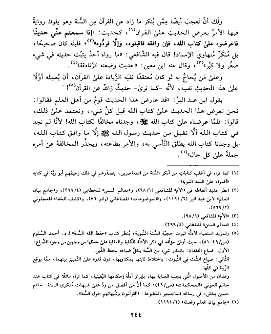 وهذان من الأصول الَّتي يجب العناية بها، بإبراز أدلَّة إحكامها اليَّقينية، كما تراه ماثلًا في كتاب عند حاتم العوني «المحكمات» (ص/٤٩)؛ كما أنَّ من أفضل من ردَّ على شبهات مُنكري السنة: خادم حسين بخش، في رسالته الماجستير المَطبوعة: «القرآنيون وشُبهاتهم حول السُّنة».