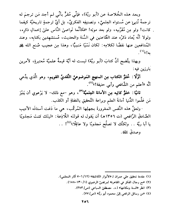 وبهذا يتَّضح أنَّ كتابَ (أبو ريَّة) ليست له أيَّة قيمةٌ علميَّة مُعتبرةٍ، لأمرين بارزين فيه: