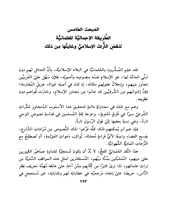 الطَّريقة الإجماليَّة للعَلمانيِّة لنقضِ التُّراث الإسلاميِّ وغايتُها مِن ذلك