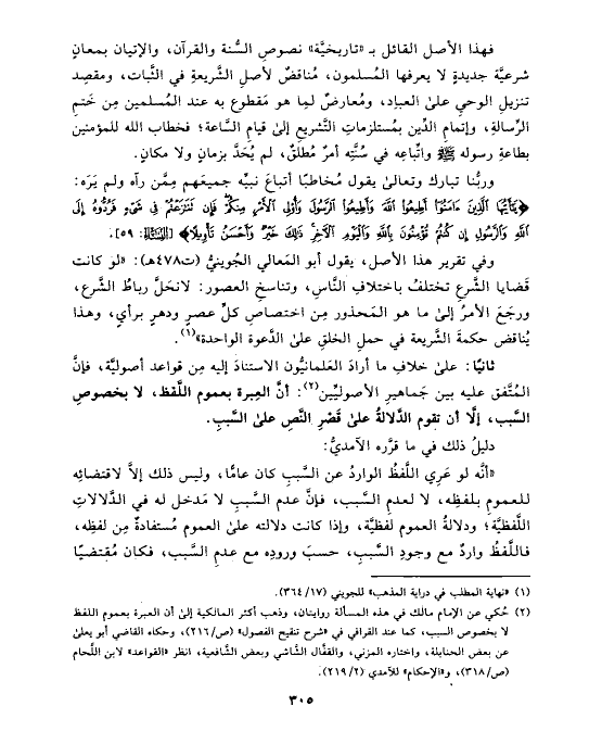 ثانيًا: على خلافِ ما أرادَ العَلمانيُّون الاستنادَ إليه مِن قواعد أصوليَّة، فإنَّ المُتَّفق عليه بين جَماهيرِ الأصوليِّين (¬٢) أنَّ العِبرة بعموم اللَّفظ، لا بخصوصِ السَّبب، إلَّا أن تقوم الدَّلالةُ على قَصْرِ النَّصِ على السَّببِ.