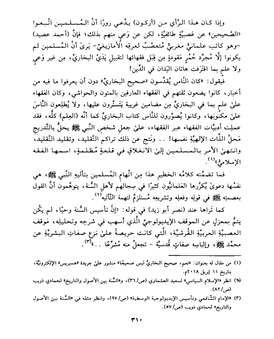 (¬١) من مقال له بعنوان: «نعم، صحيح البخاريِّ ليس صحيحًا» منشور على جريدة «هسبريس» الإلكترونيَّة، بتاريخ ١١ إبريل ٢٠١٨ م.