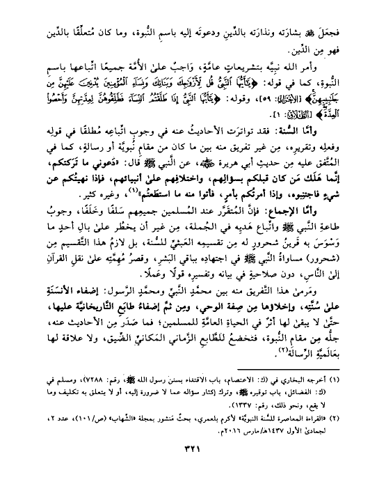 (¬٢) «القراءة المعاصرة للسُّنة النبويَّة» لأكرم بلعمري، بحثٌ مَنشور بمجلة «الشِّهاب» (ص/١٠١)، عدد ٢، لجمادى الأول ١٤٣٧ هـ/مارس ٢٠١٦ م.