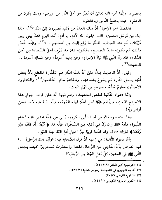 وقيل: أنَّ الحديث يَدلُّ على أنَّ بعْثَ النِّار هم الكُفَّار؛ للقطعِ بأنَّ بعضَ أُمَّتِه يدخل النَّار، ثم يخرجُ بشفاعتِه، وشفاعةِ سائرِ الشَّافعين (¬٤)؛ والكافرون الأصليُّون معلومٌ مُقدَّمًا مصيرهم مِن أوَّلِ البعثِ.