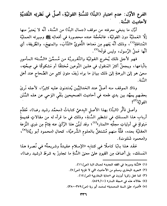 الفرع الأوَّل: عدم اعتبارِ (البنَّا) للسُّنةِ القوليَّةِ، أصلٌ في نَظرتِه النَّقديَّةِ لأحاديث السُّنة.