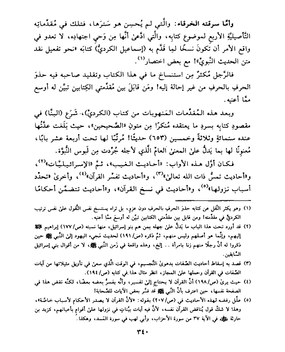 (¬١) وهو يكثر النَّقل عن كتابه حذوَ الحرفِ بالحرفِ دون عزوٍ، بل تراه يستنسخ نفس النُّقول على نفس ترتيب الكرديِّ في مقدِّمته! ومن قابل بين مقدِّمتي الكتابين تبيَّن له أوسعَ ممَّا أعنيه.