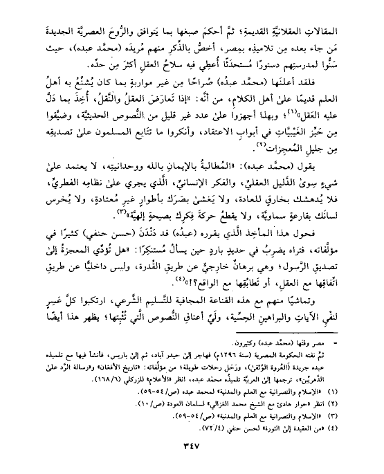 (¬١) «الإسلام والنصرانية مع العلم والمدنية» لمحمد عبده (ص/٥٤ - ٥٩).