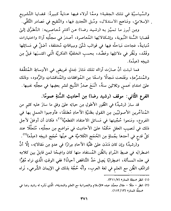 (¬٢) انظر - مثلًا - مقال محمَّد عبده «الإسلام والنصرانية مع العلم والمدنية»، الَّذي نَشَره له رشيد رضا في «مجلَّة المنار» (١٣/ ٦١٣).