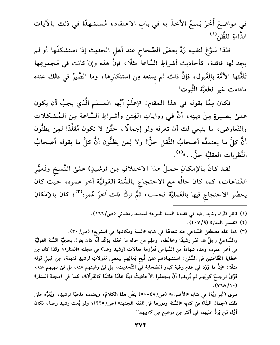 (¬١) انظر «آراء رشيد رضا في قضايا السنة النبوية» لمحمد رمضاني (ص/١٦٦).