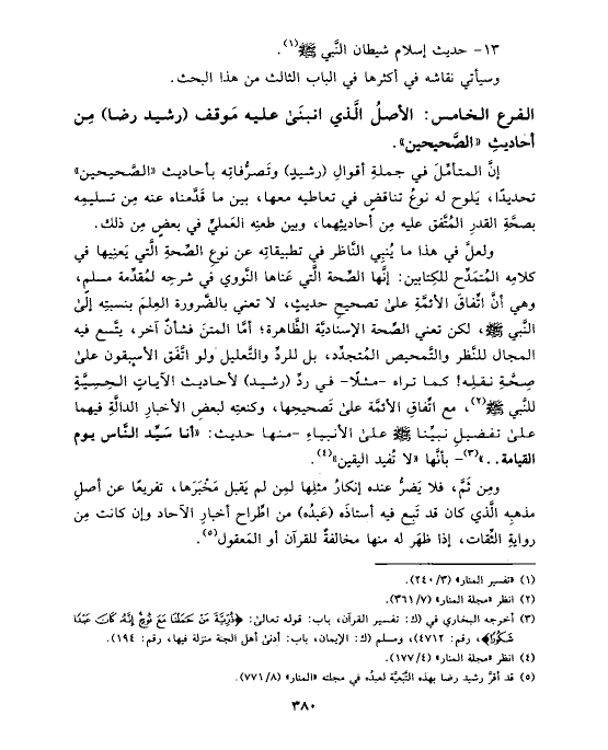 الفرع الخامس: الأصلُ الَّذي انبنَى عليه مَوقف (رشيد رضا) مِن أحاديثِ «الصَّحيحين».
