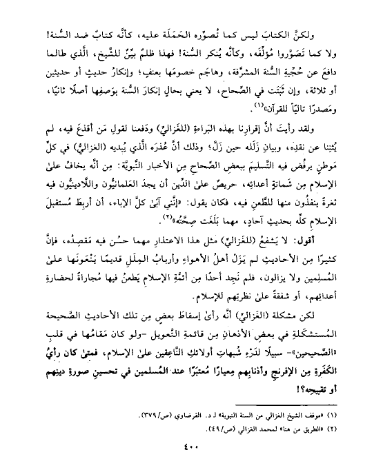 (¬١) «موقف الشيخ الغزالي من السنة النبوية» لـ د. القرضاوي (ص/٣٧٩).