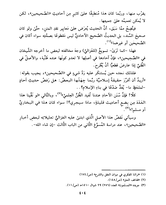وسيأتي نَقضُ هذا الأصلِ الَّذي ابتنى عليه الغزاليُّ تعليلاتِه لبعضِ أخبارِ «الصَّحيحين»، عند دراسة المُسوِّغ الثَّاني من الباب الثَّالث -إن شاء الله-.