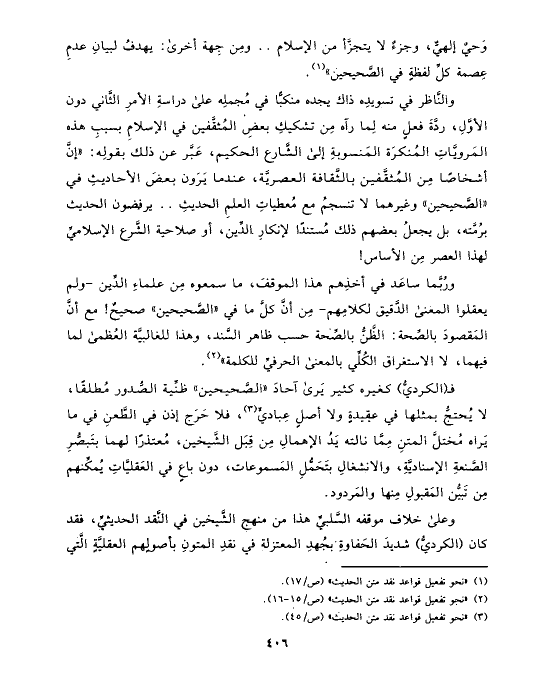 وَحيٌ إلهيٌّ، وجزءٌ لا يتجزَّأ من الإسلام .. ومِن جِهة أخرى: يهدفُ لبيانِ عدمِ عِصمة كلِّ لفظةٍ في الصَّحيحين» (¬١).