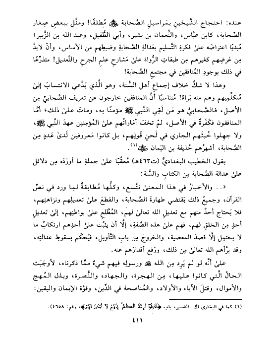 يقول الخطيب البغداديُّ (ت ٤٦٣ هـ) مُعقِّبًا على جملةِ ما أورَدَه مِن دلائل على عدالة الصَّحابة مِن الكتابِ والسُّنة: