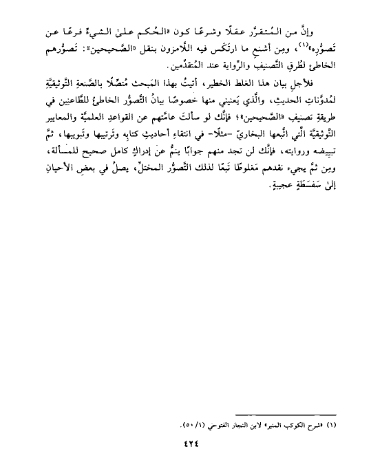 وإنَّ من المُتقرَّر عقلًا وشرعًا كون «الحُكم على الشيءِّ فرعًا عن تَصوُّرِه» (¬١)، ومِن أشنعِ ما ارتَكَس فيه اللَّامزون بنقل «الصَّحيحين»: تَصوُّرهم الخاطئ لطُرقِ التَّصنيفِ والرِّواية عند المُتقدِّمين.