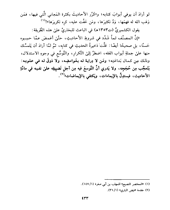 يقول الكشميريُّ (ت ١٣٥٣ هـ) في الباعث للبخاريِّ على هذه الطَّريقة: