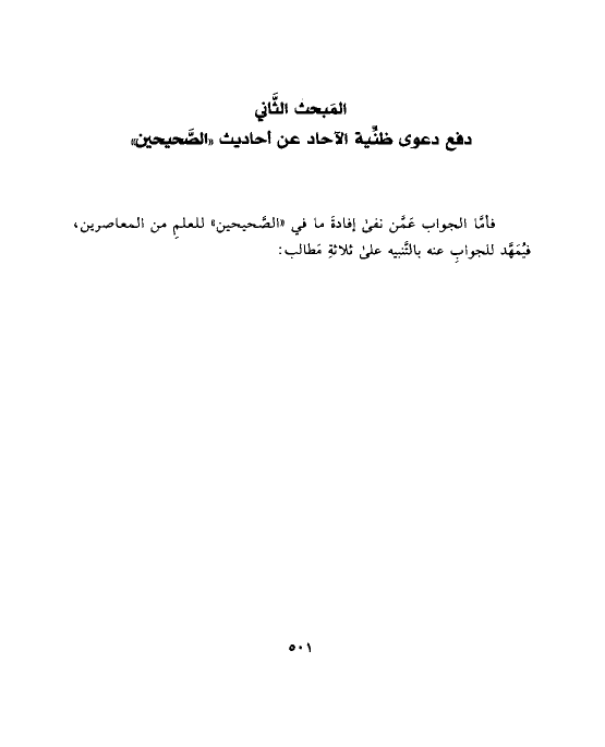 فأمَّا الجواب عَمَّن نفى إفادةَ ما في «الصَّحيحين» للعلمِ من المعاصرين، فيُمَهَّد للجوابِ عنه بالتَّنبيه على ثلاثةِ مَطالب: