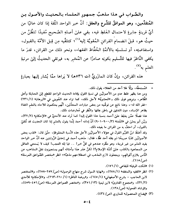 (¬٢) انظر «الفقيه والمتفقه» (١/ ٢٧٨)، و «نهاية السول شرح منهاج الوصول» (ص/٢٥٧ - ٢٥٨)، و «المختصر لابن الحاجب - بشرح الأصفهاني» (١/ ٦٤٥)، و «روضة الناظر» (١/ ٢٦٠ - ٢٦٣)، و «الإحكام» للآمدي (٢/ ٣٢)، و «مجموع الفتاوى» لابن تيمية (١٣/ ٣٥١)، و «مختصر الصواعق المرسلة» (ص/٤٥٦ - ٤٥٩)، و «إرشاد الفحول» (ص/١٣٨).
