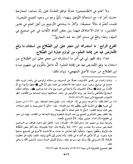 هذا؛ وقد ظهر لي في أمرِ ما استدركه ابن حجرٍ على ابن الصَّلاح مِن استثناءِ ما وقع التَّعارض فيه عن إفادة العلمِ؛ أنَّه داخلٌ باللُّزوم في مفهومِ عبارة ابن الصَّلاح من حيث الأصلِ المنهجي؛ وبيان ذلك: