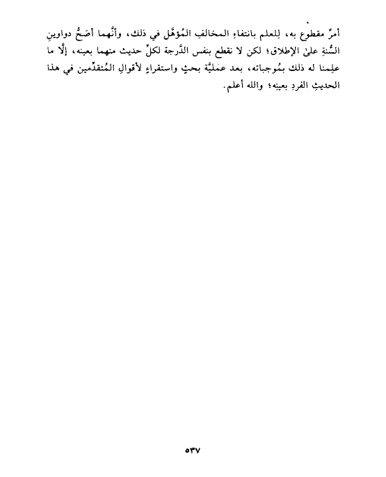 أمرٌ مقطوع به، لِلعلم بانتفاءِ المخالفِ المُؤهَّل في ذلك، وأنَّهما أصَحُّ دواوينِ السُّنةِ على الإطلاق؛ لكن لا نقطع بنفس الدَّرجة لكلِّ حديث منهما بعينه، إلَّا ما علِمنا له ذلك بمُوجباته، بعد عمليَّة بحثٍ واستقراءٍ لأقوالِ المُتقدِّمين في هذا الحديثِ الفردِ بعينِه؛ والله أعلم.