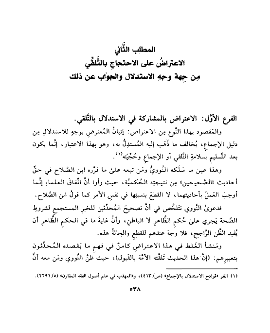 الفرع الأوَّل: الاعتراض بالمشاركة في الاستدلال بالتَّلقي.