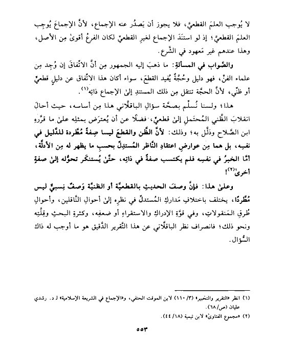(¬١) انظر «التقرير والتحبير» (٣/ ١١٠) لابن الموقت الحنفي، و «الإجماع في الشريعة الإسلامية» لـ د. رشدي عليان (ص/٦٨).