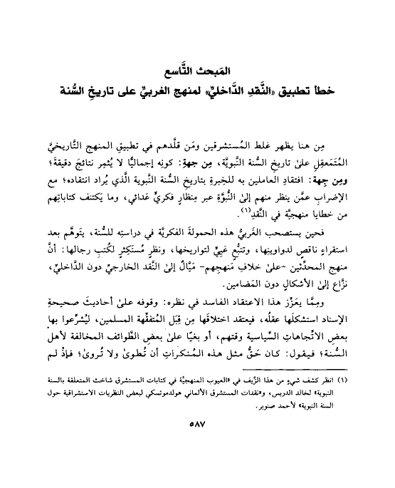 (¬١) انظر كشف شيءٍ من هذا الزَّيف في «العيوب المنهجيَّة في كتابات المستشرق شاخث المتعلقة بالسنة النبوية» لخالد الدريس، و «نقدات المستشرق الألماني هولدموتسكي لبعض النظريات الاستشراقية حول السنة النبوية» لأحمد صنوبر.